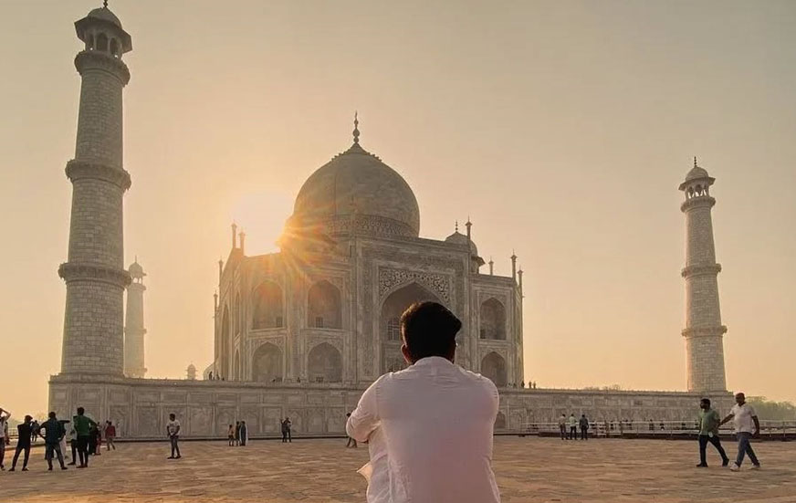 Early in the morning, enjoy a sunrise visit to the Taj Mahal, one of the most beautiful monuments in the world and a timeless symbol of love. The morning light makes this the best time for photography and a peaceful visit.